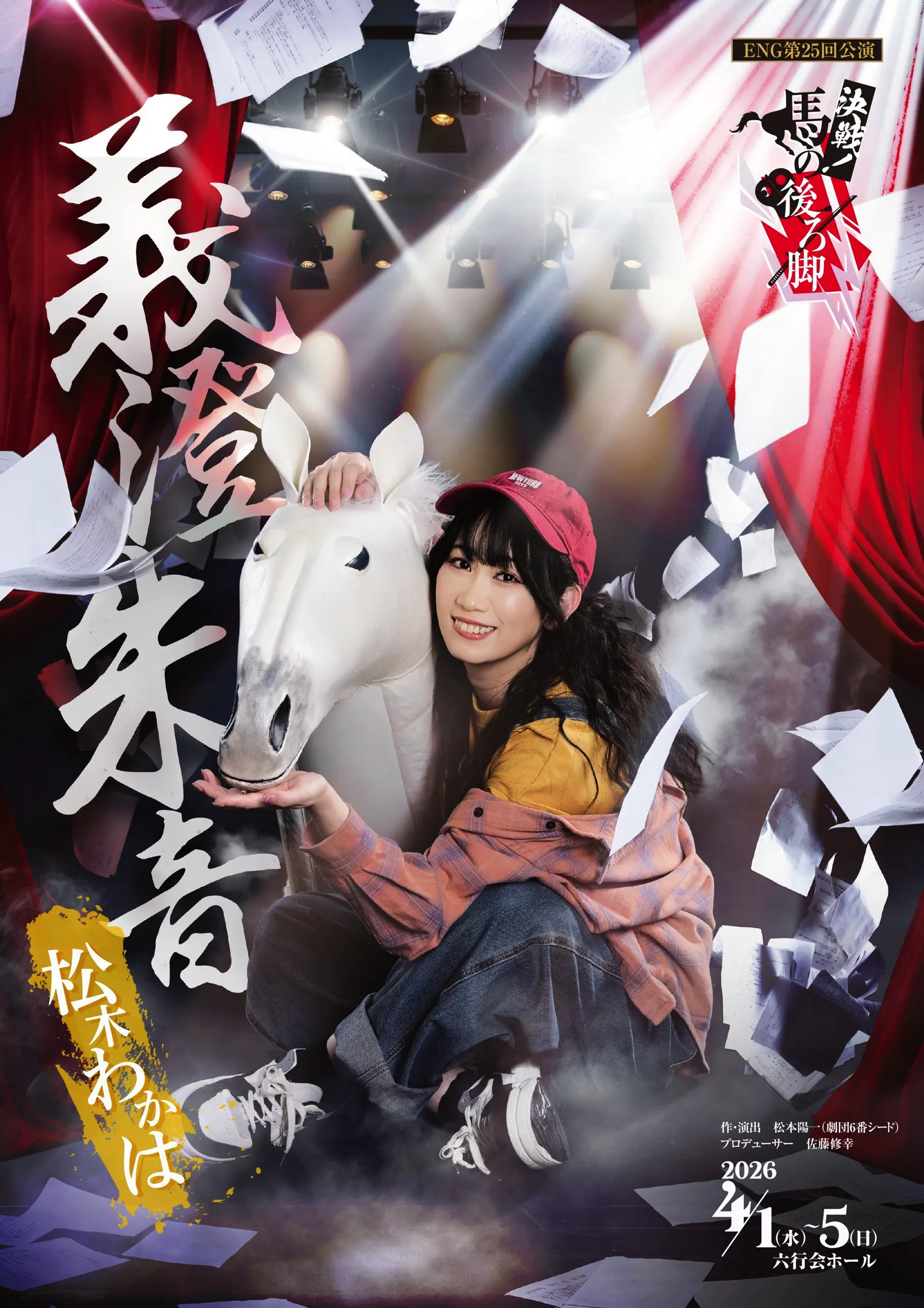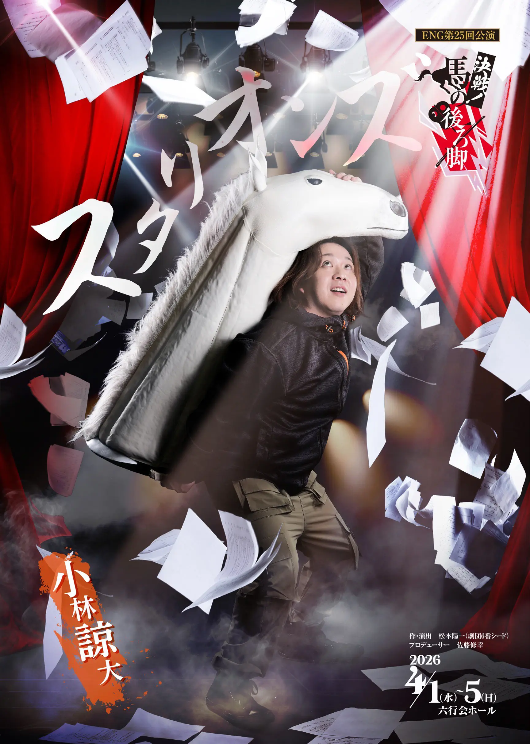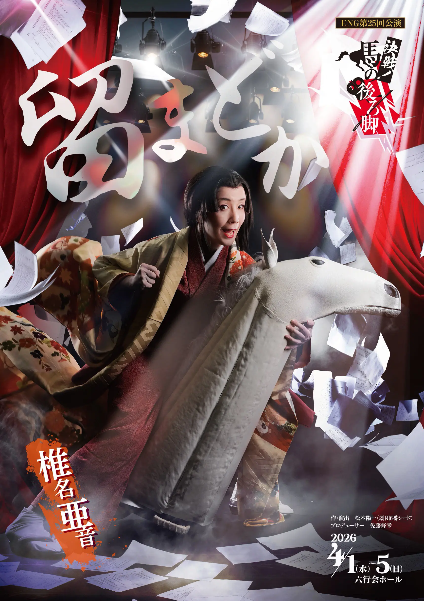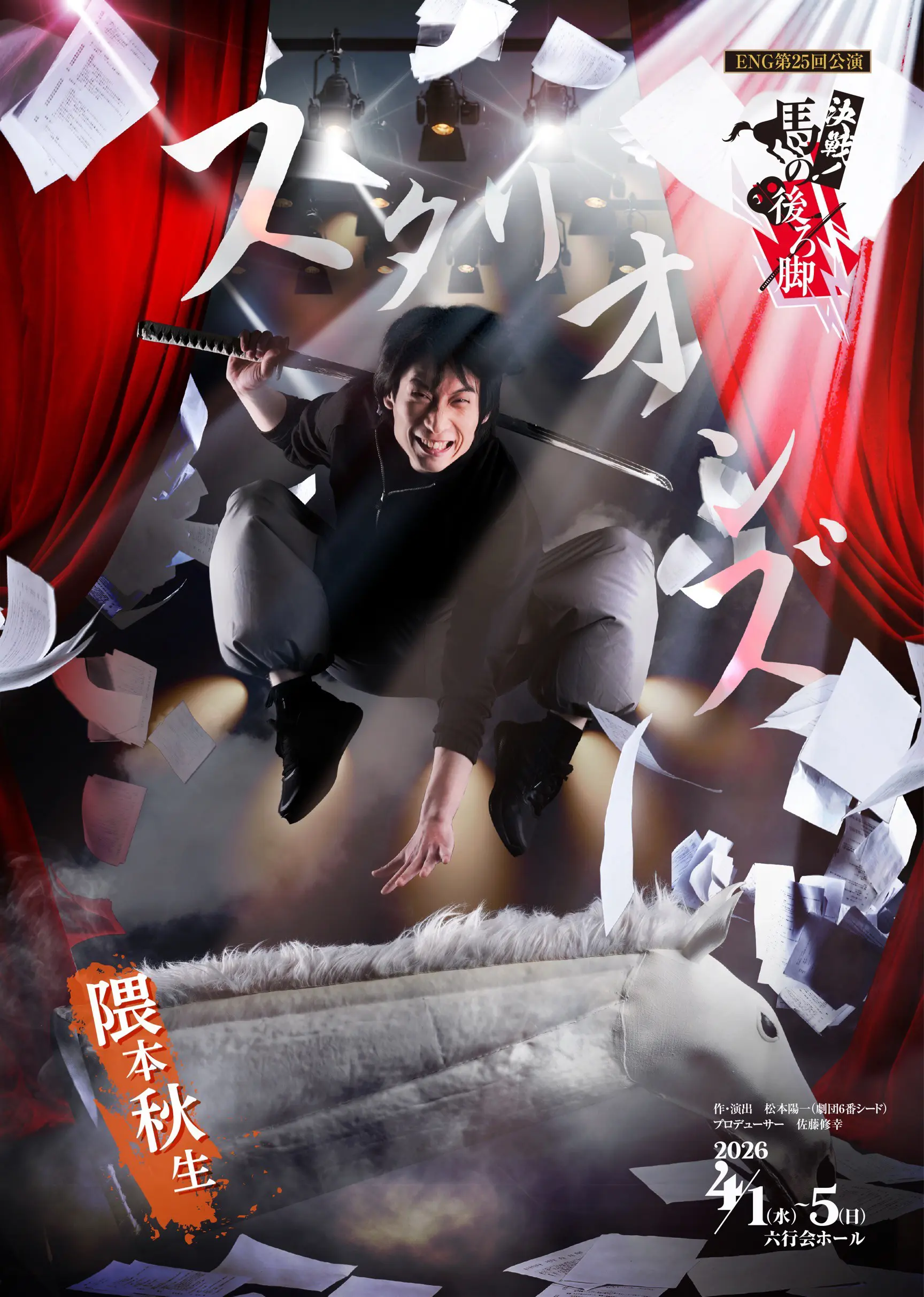【お届けする内容】①決戦!馬の後ろ脚のキャストのお気に入りの台本1ページ(書き込み付き宛名入り生サイン付き)② キャストオリジナルブロマイド③ 決戦!馬の後ろ脚オリジナルデザインチケット④ 決戦!馬の後ろ脚集合写真⑤ 決戦!馬の後ろ脚フライヤー