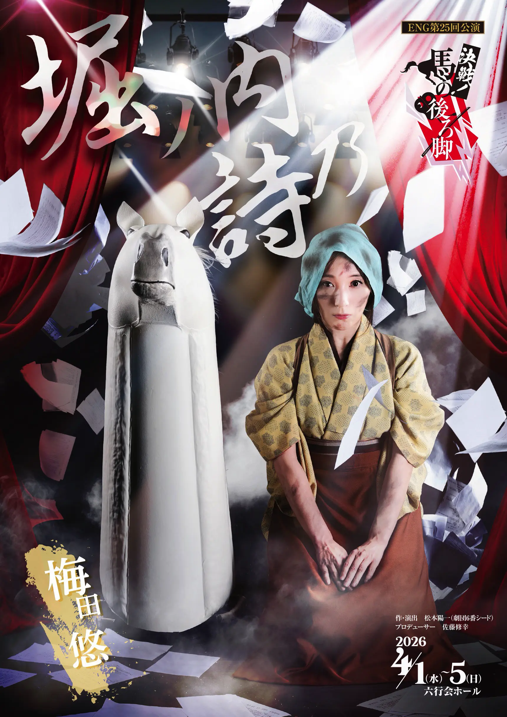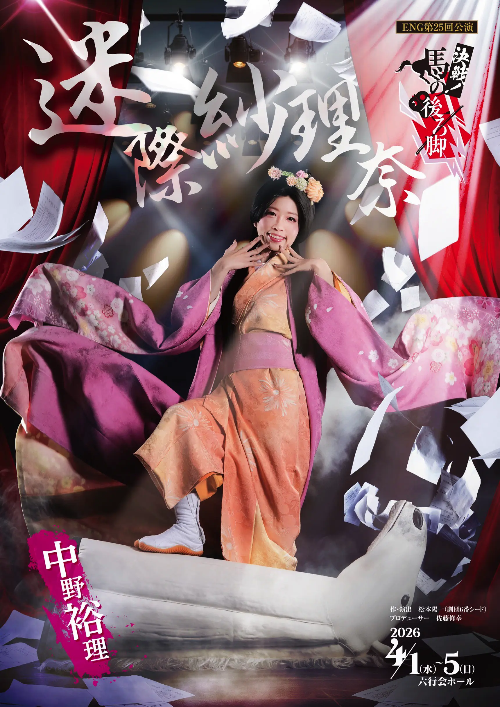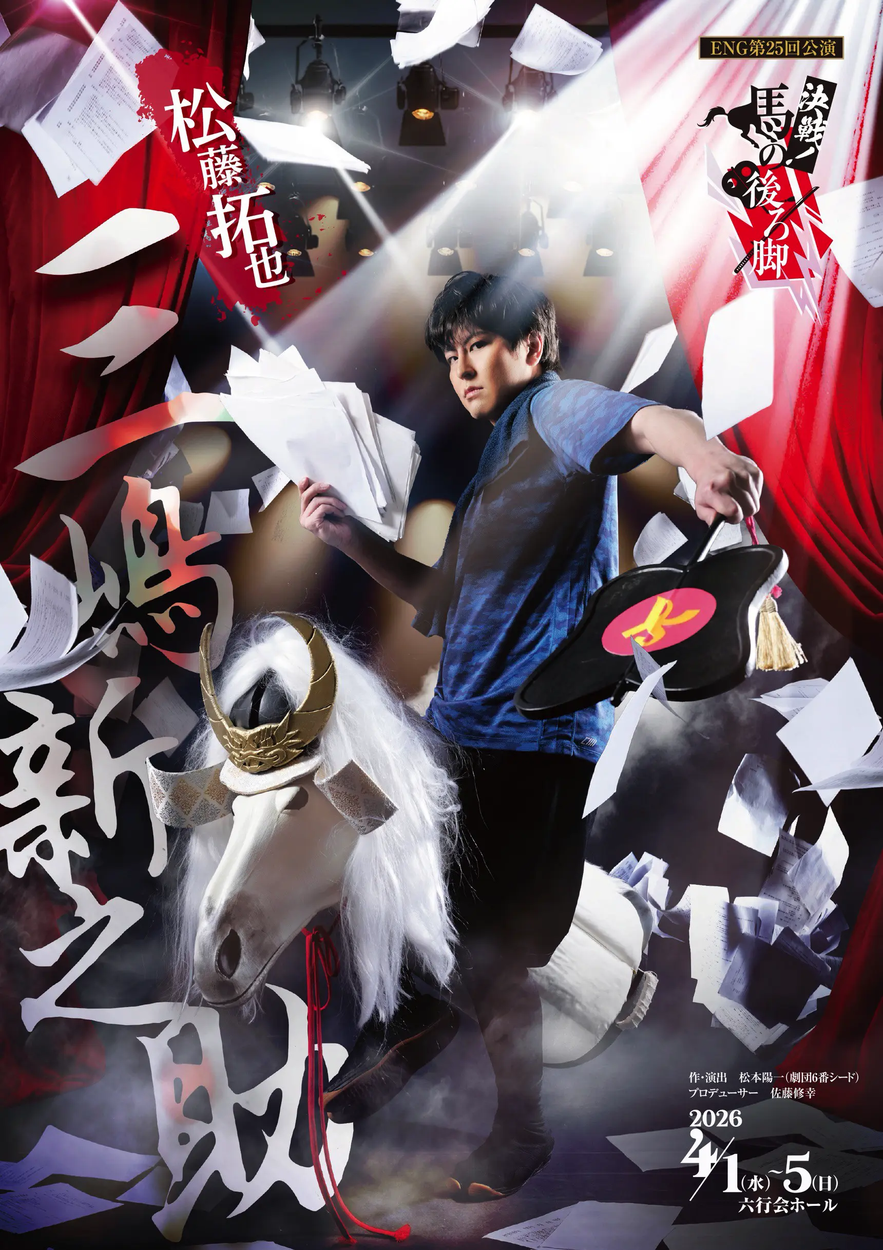 【お届けする内容】①決戦!馬の後ろ脚のキャストのお気に入りの台本1ページ(書き込み付き宛名入り生サイン付き)② キャストオリジナルブロマイド③ 決戦!馬の後ろ脚オリジナルデザインチケット④ 決戦!馬の後ろ脚集合写真⑤ 決戦!馬の後ろ脚フライヤー