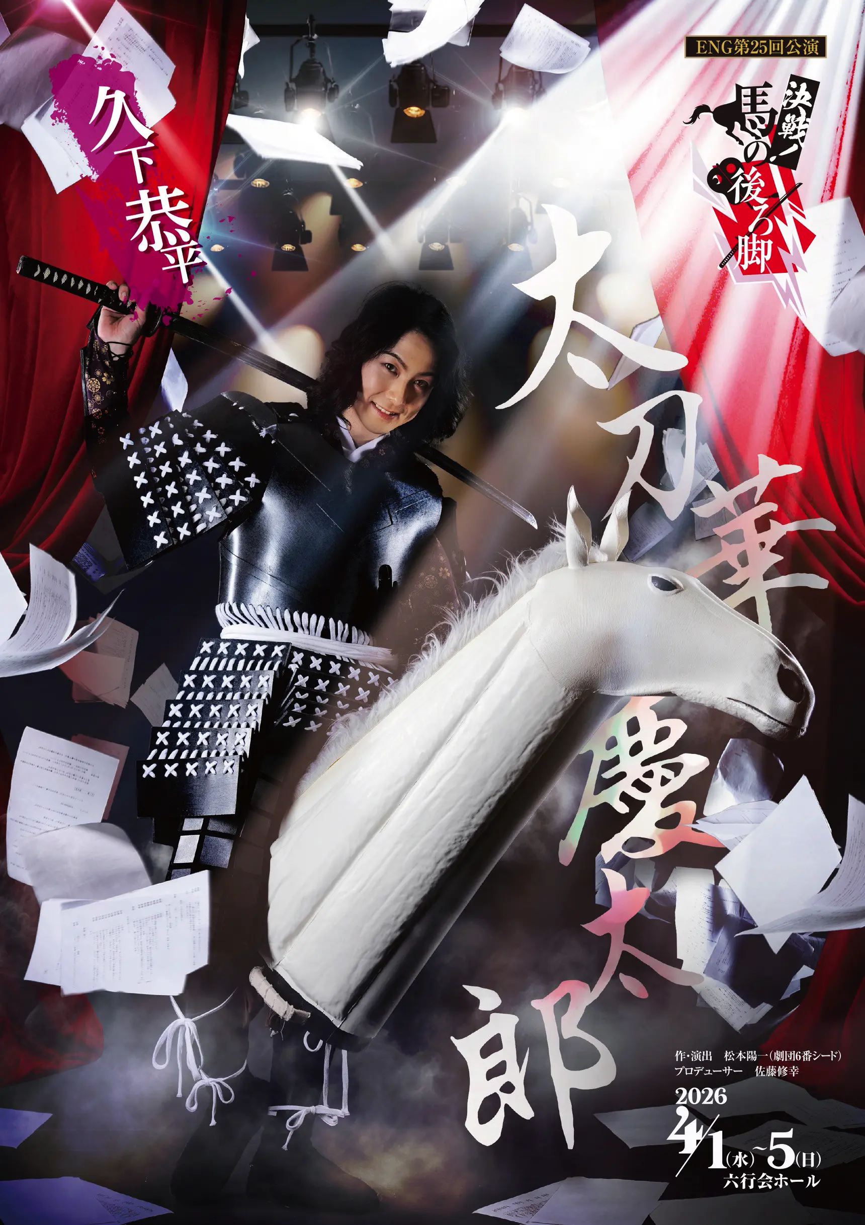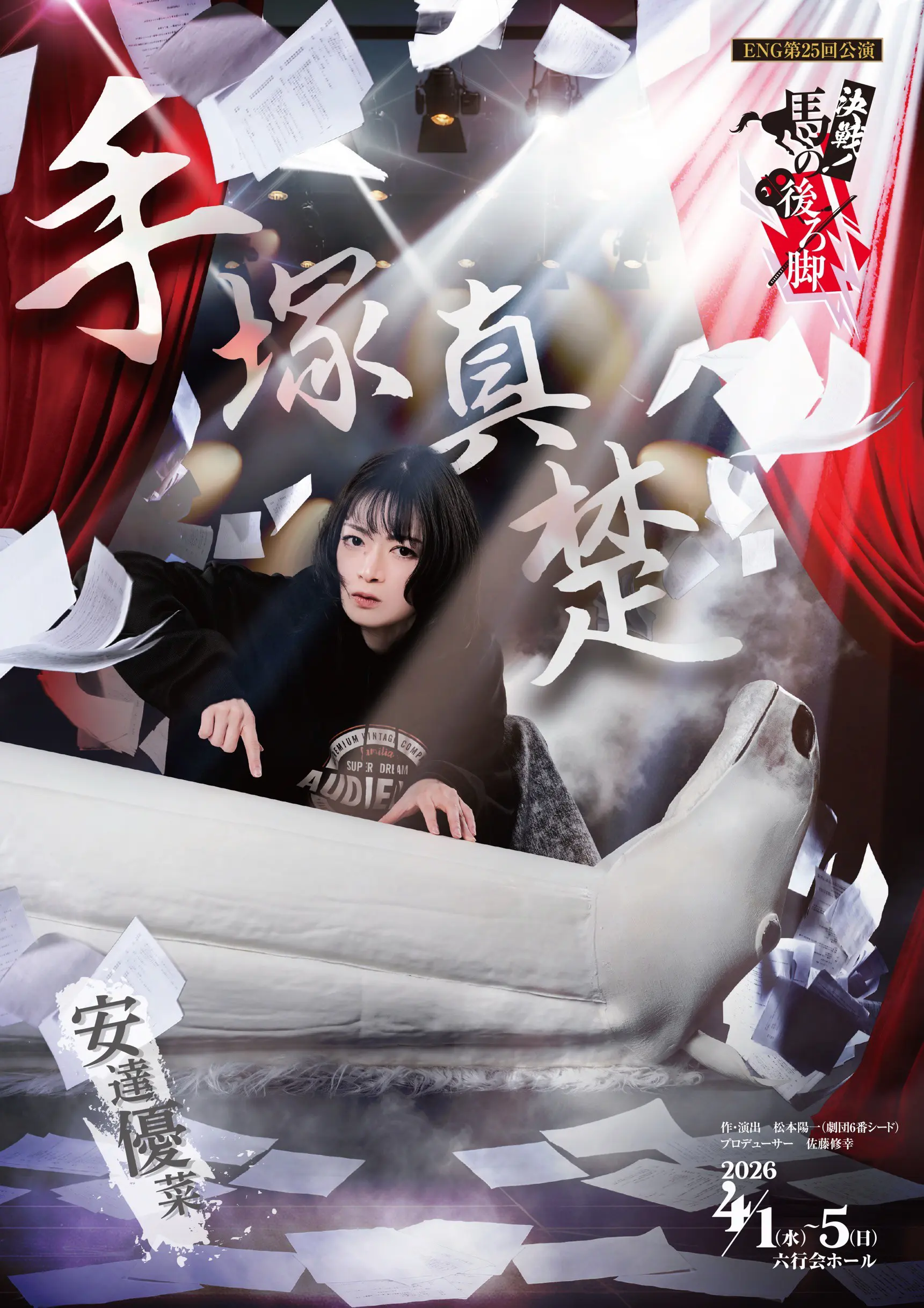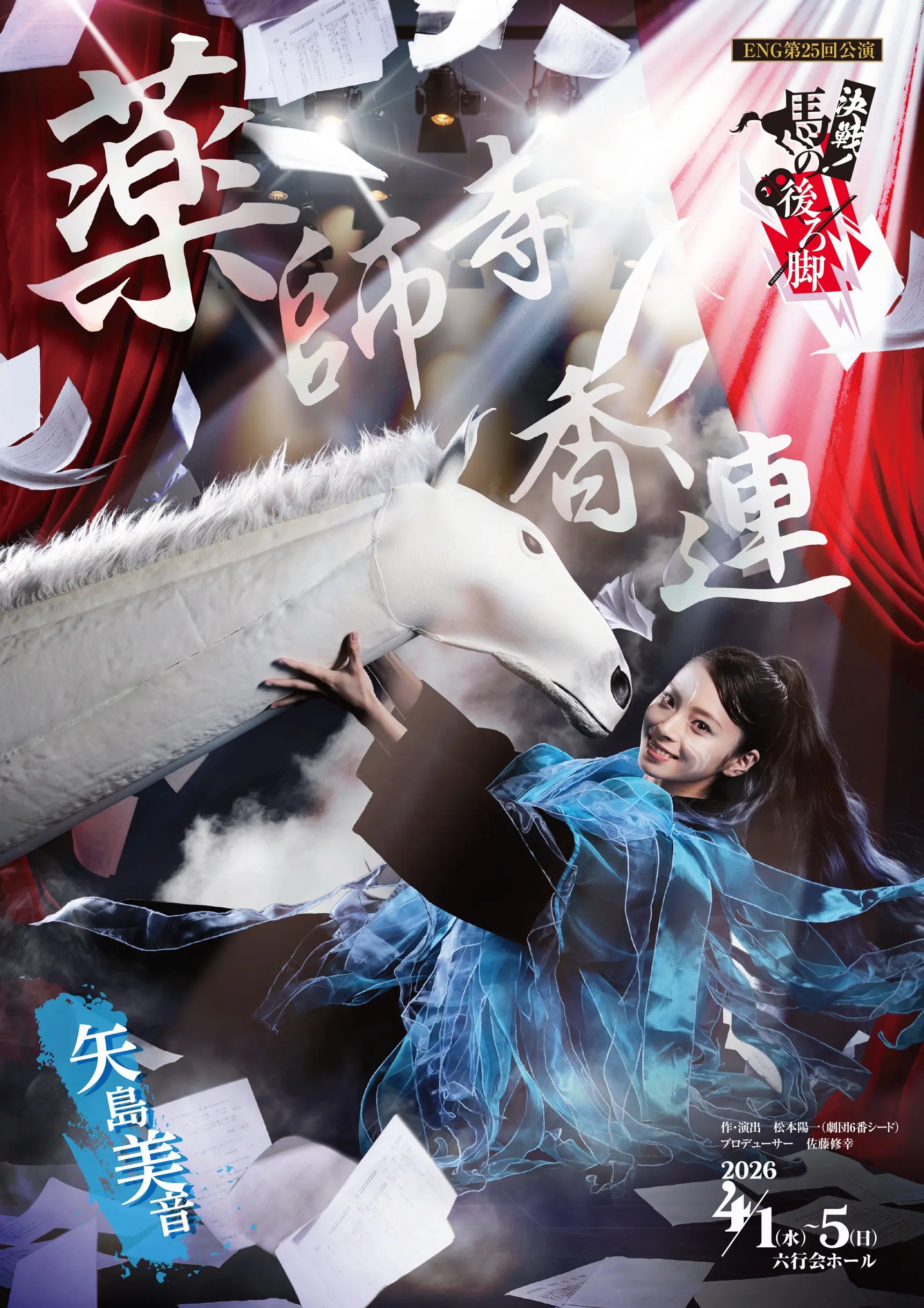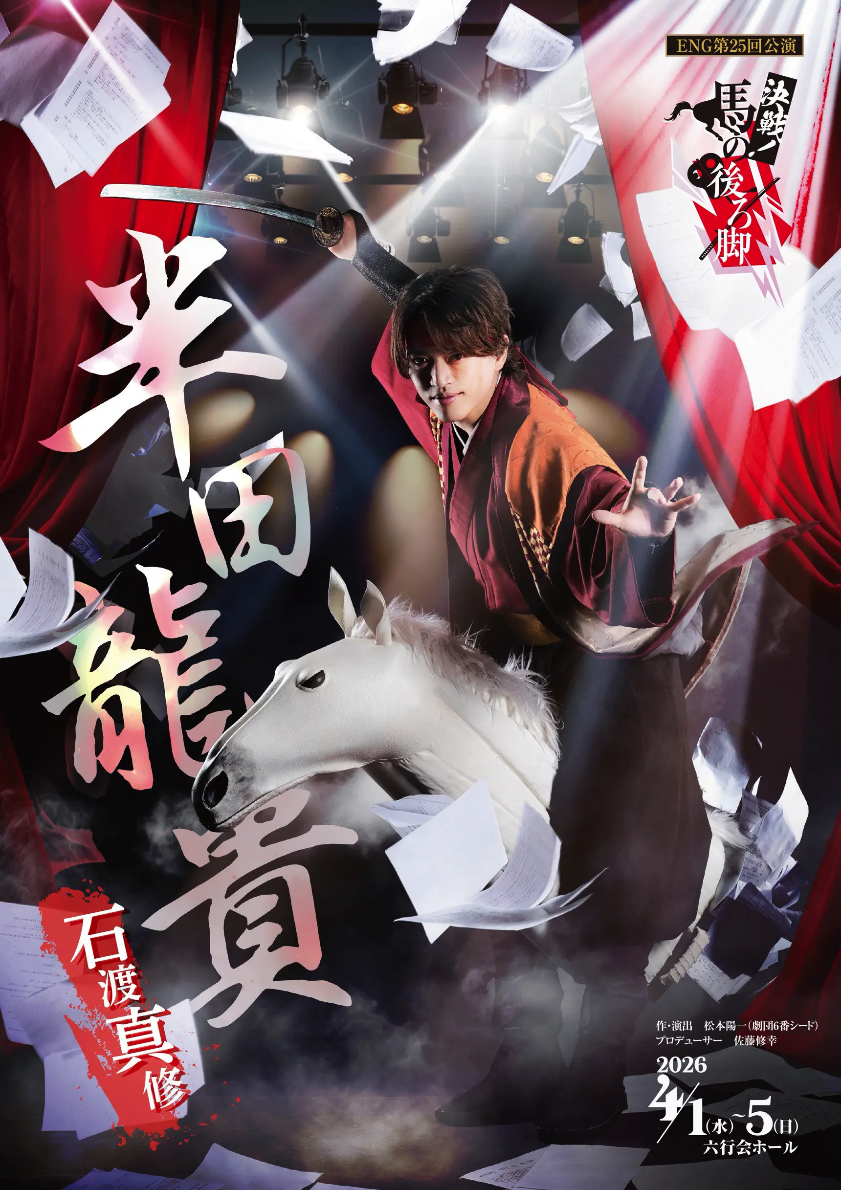 【お届けする内容】①決戦!馬の後ろ脚のキャストのお気に入りの台本1ページ(書き込み付き宛名入り生サイン付き)② キャストオリジナルブロマイド③ 決戦!馬の後ろ脚オリジナルデザインチケット④ 決戦!馬の後ろ脚集合写真⑤ 決戦!馬の後ろ脚フライヤー