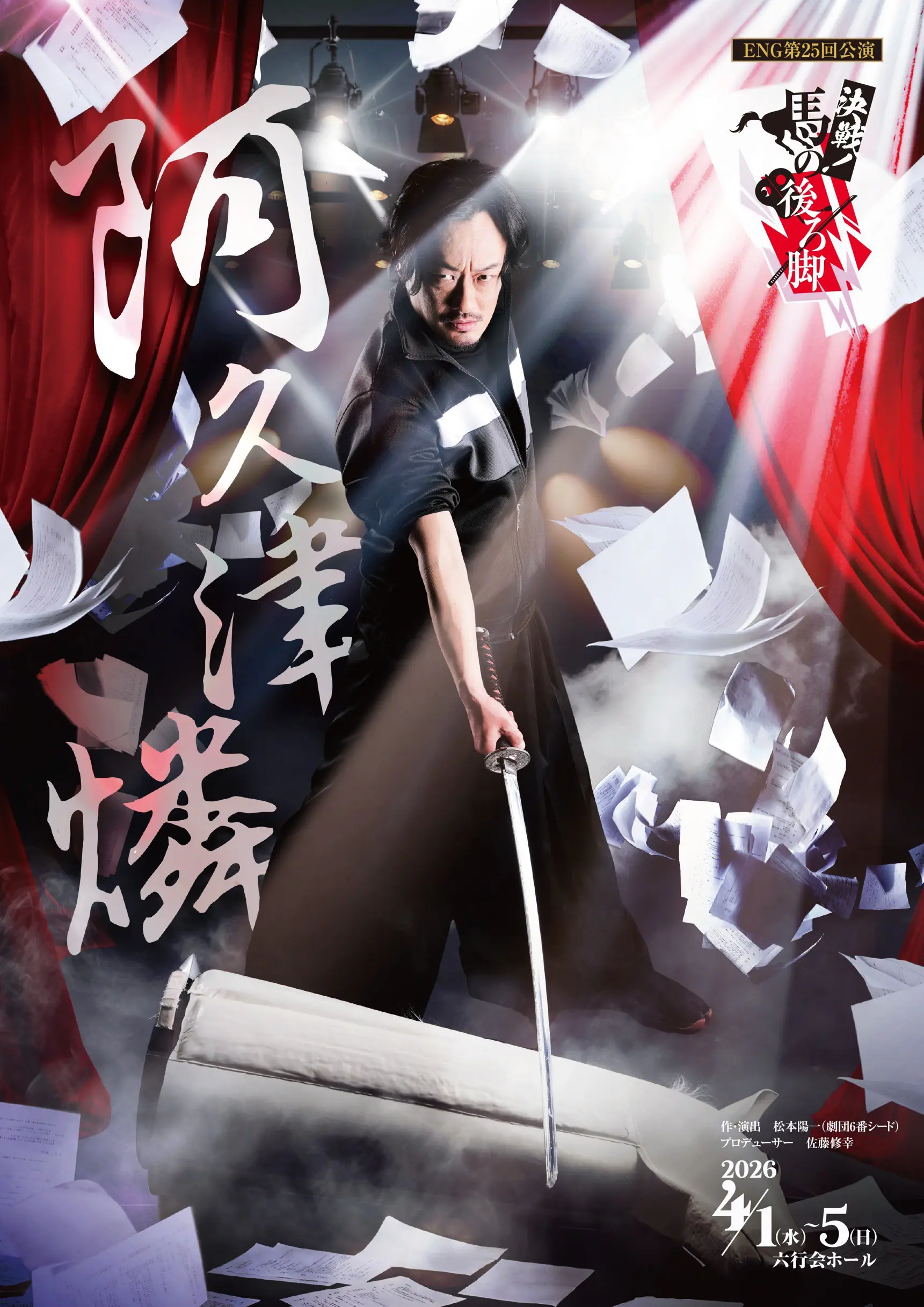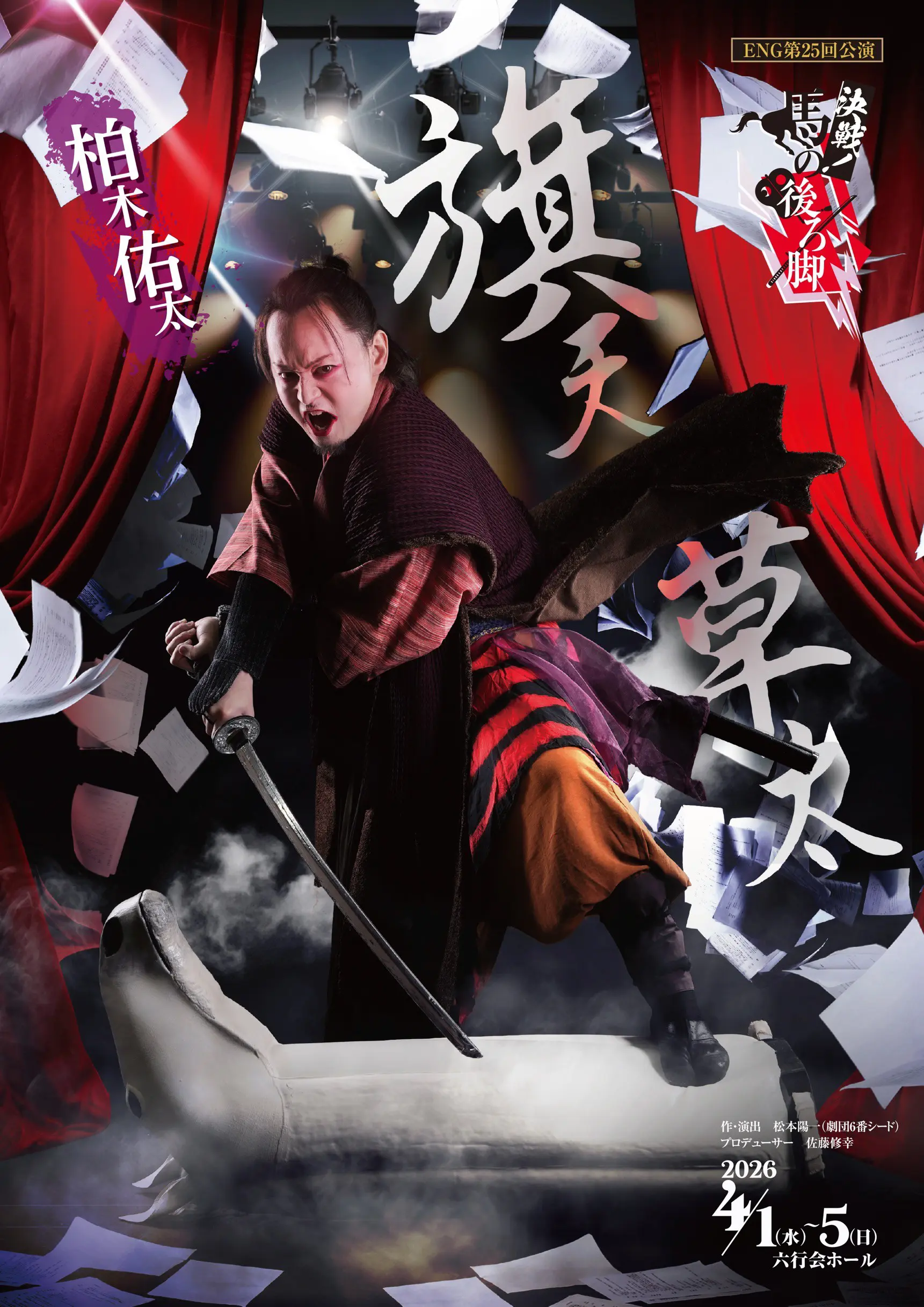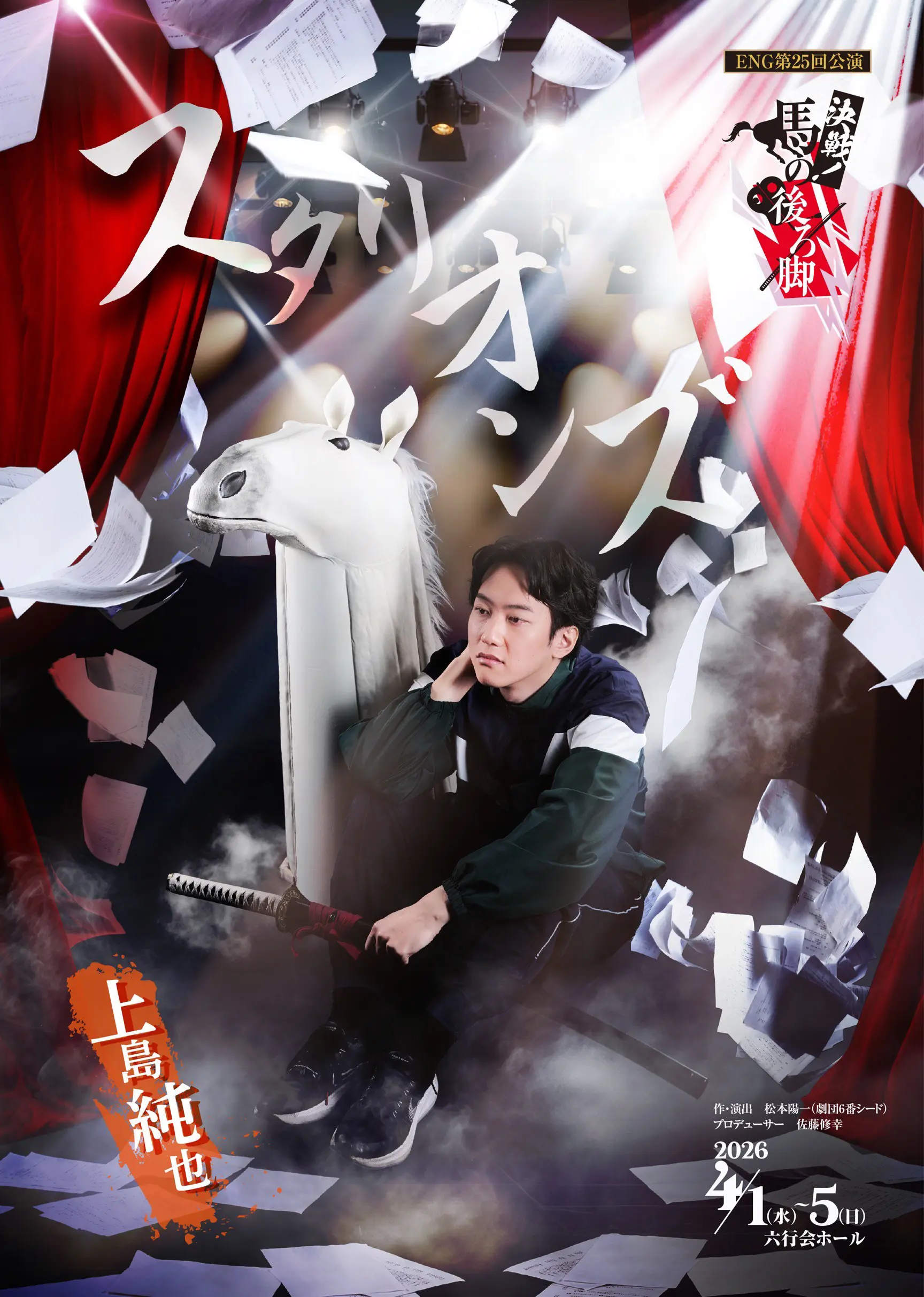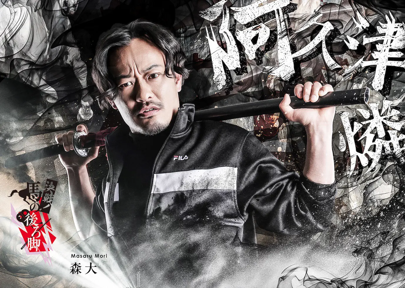 この舞台の殺陣師とは連絡が取れなくなっていて、集まった俳優達からは不満と焦りの声が上がり始める。そんな中、稽古場の隅で自主練習をしていた俳優が、馬の後ろ脚役の若手俳優、三嶋新之助(みしま・しんのすけ)を叱り始める。